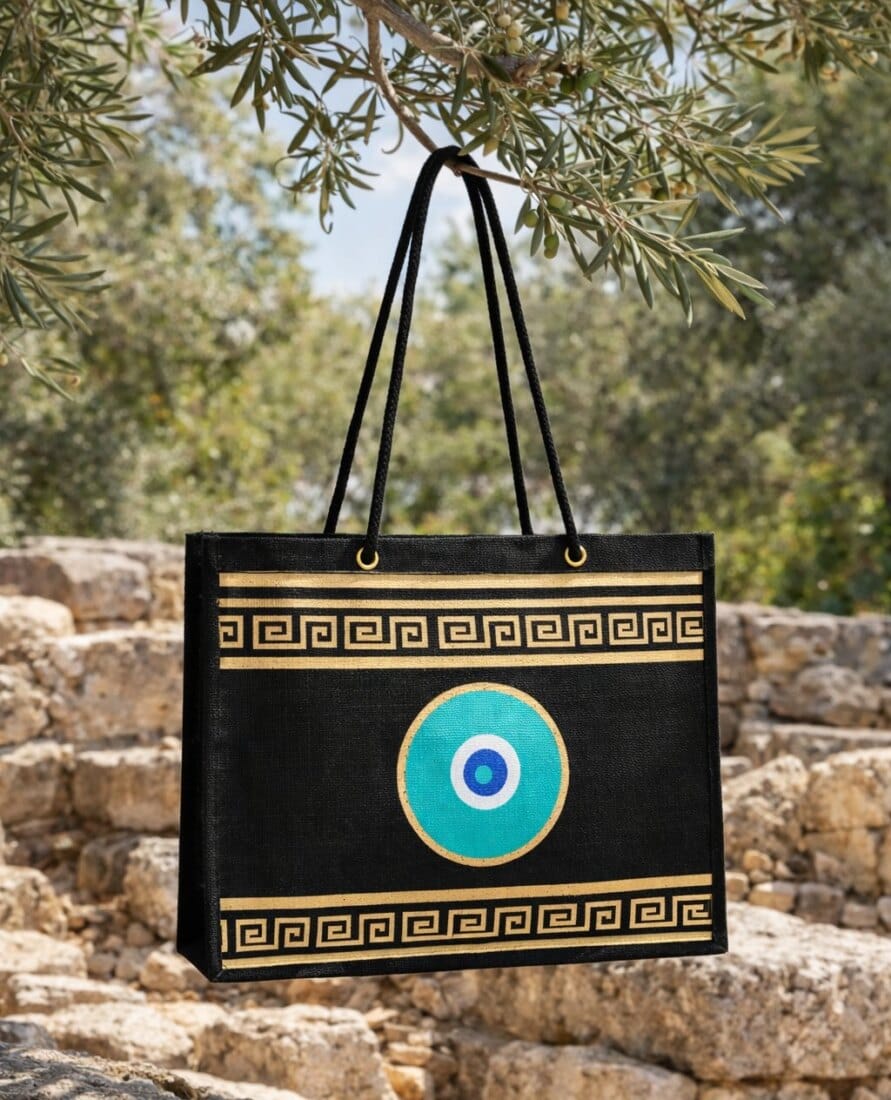 - Χρώμα: Μαύρο με σχέδιο ματι μέανδρο μαύρο -τερκουάζ -χρυσό