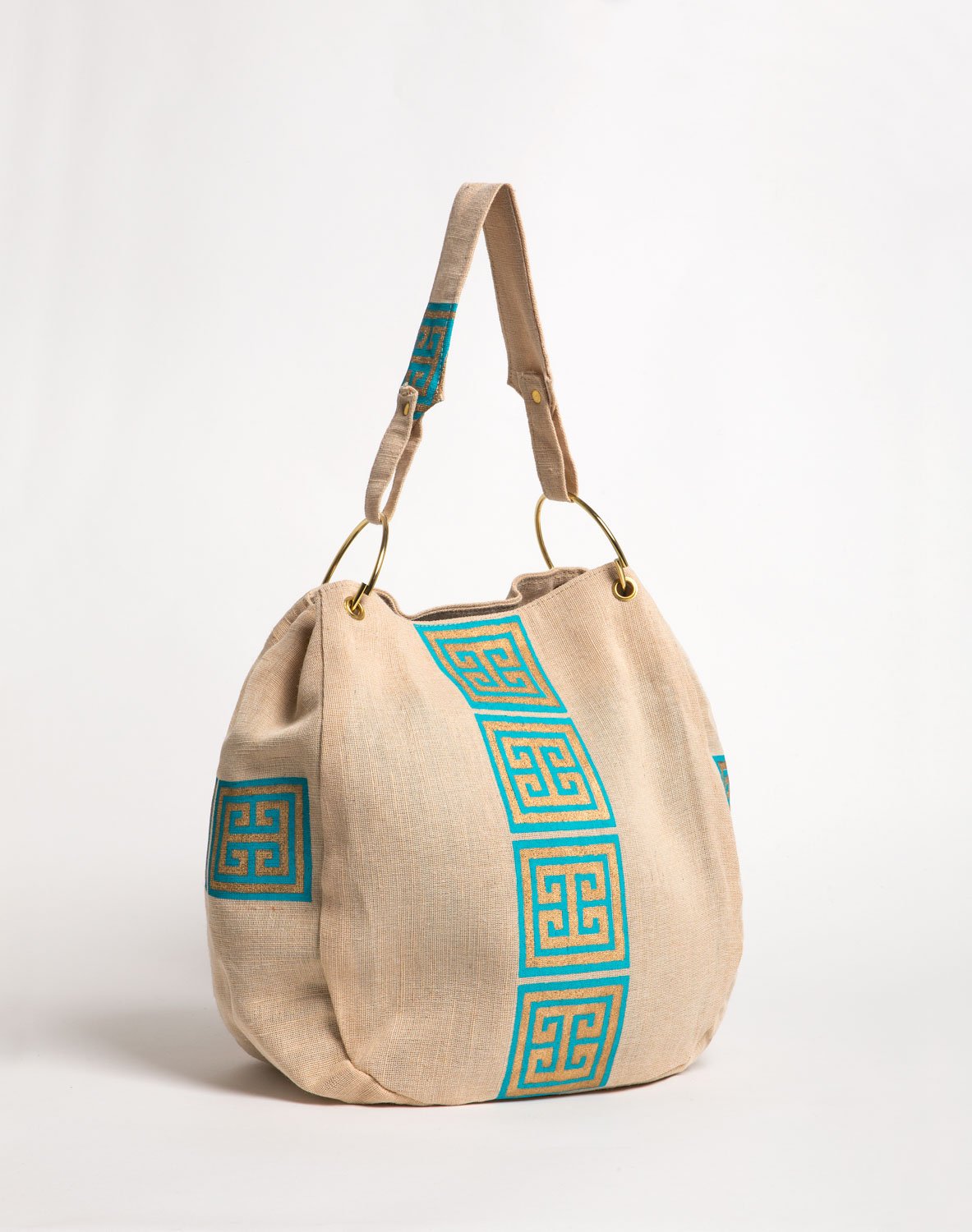 - Χρώμα: Φυσικό με σχέδιο μέανδρο τερκουάζ-χρυσό